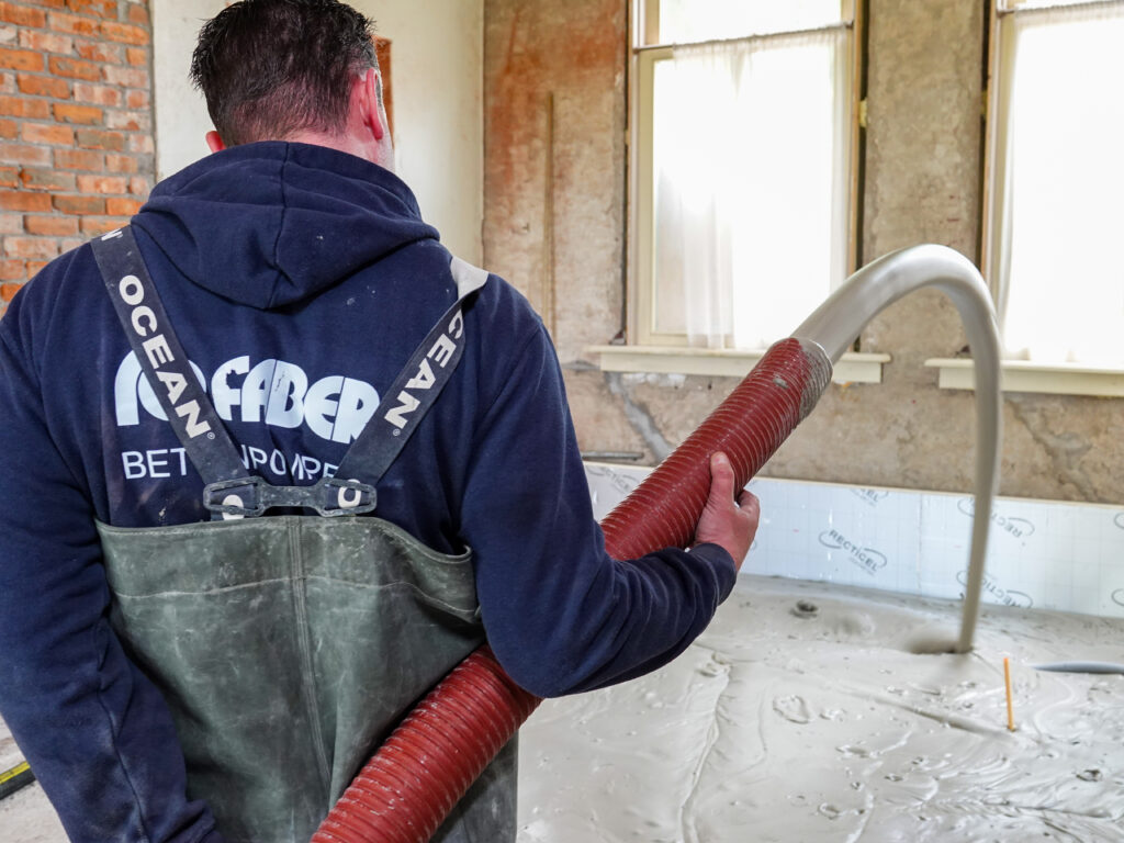 Bij Faber Comfortvloer nemen we het storten van het schuimbeton volledig uit handen. Het is specialistisch werk en vereist ervaring en precisie om een kwalitatief hoogwaardig resultaat te garanderen. Daarom voeren onze eigen, speciaal getrainde collega’s dit werk altijd zelf uit. Zo weet je zeker dat het schuimbeton correct wordt aangebracht, dat de vloer optimaal uithardt en dat je jarenlang kunt profiteren van een stabiele, comfortabele en energiezuinige vloer.